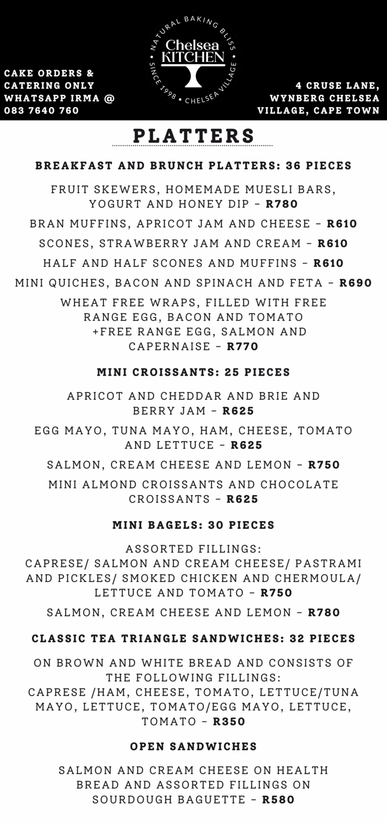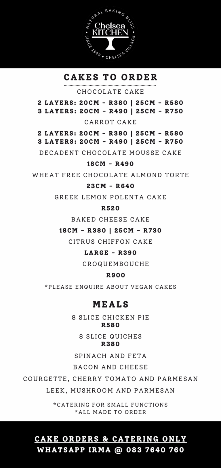 To place an order, please Whatsapp Irma on 083 7640 760.